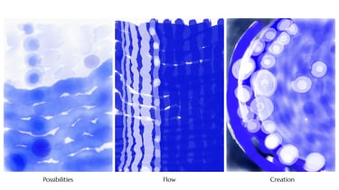 This series of Digital Paintings represent a “Meditative Triology - Possibilities, Flow, Creation” - discovery of a new life pathway in life. It serves as a visual retreat for our mind and hearts, answering the calling for calmness that we all carve for. This is an artistic way to invite ourselves to tap into the vast psychological space and a state of constance within our being that we have no time to explore before - as if it is “an inner gateway” into a refreshing future allowing me to encounter a sea of possibilities, and when I go with the flow, new creations arise. I become motivated to share the sensation of art and wellbeing and the experience of opening up to the realm of stillness. When we realise the importance of self-awareness, we know that we can be gentle to ourselves in tough times.